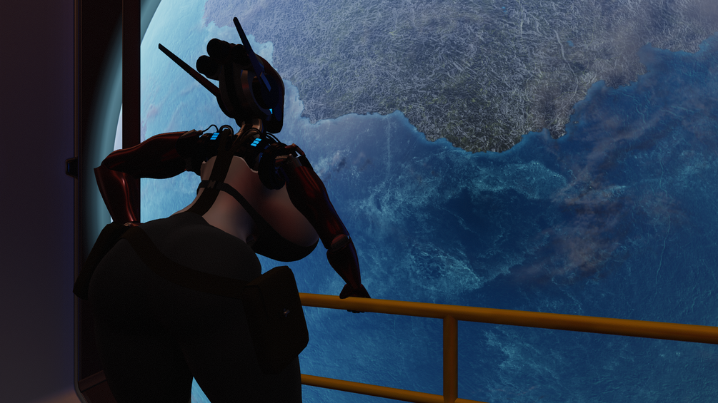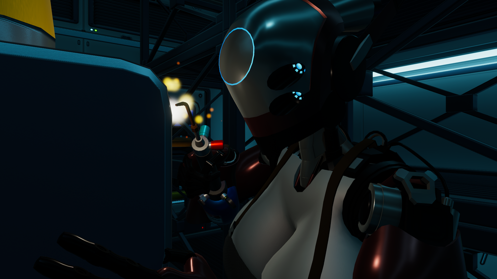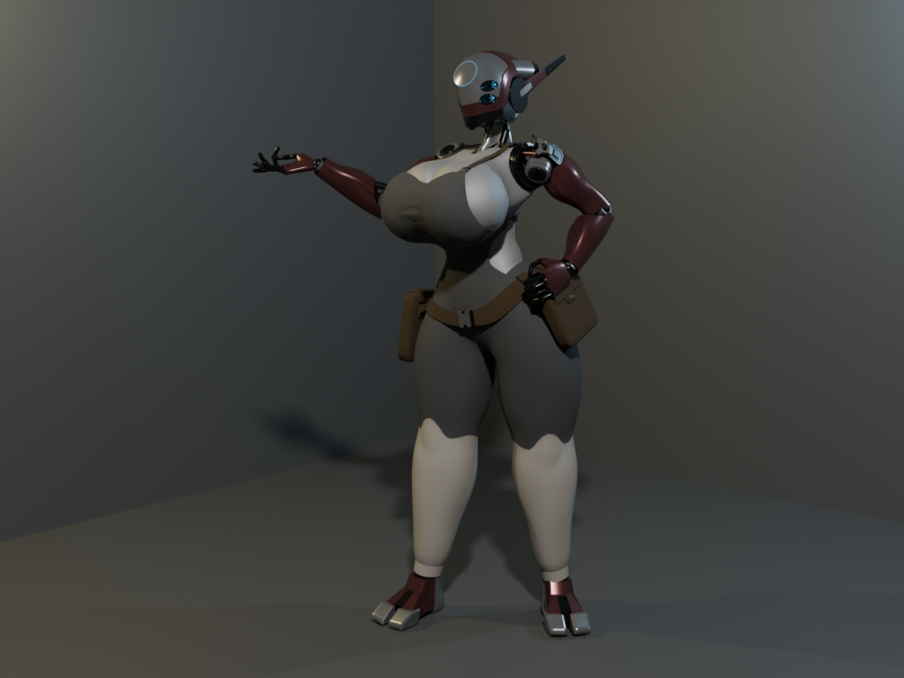Ailia comes equipped with a pipe wrench, welding torch, and a mallet, and can change between her overalls and bikini. Toggle the body's transparency to see the mechanical endoskeleton underneath.